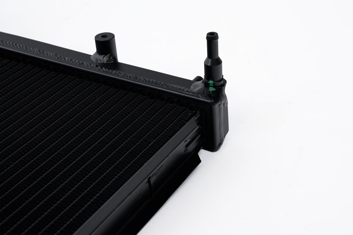 CSF has over 5 decades of experience manufacturing radiators. So when it comes to keeping your engine cool and your WRX/STI running at its best, a CSF High-Performance All-Aluminum Radiator is the obvious choice. Designed to perform on the street or at the track, a performance radiator is a must-have for both high horsepower builds as well as race vehicles which need added cooling performance in motorsports environments. This radiator features a 2-Row core with CSF's exclusive B-Tube Technology: Unlike a regular oval shape "O" type radiator tube, CSF uses a specially engineered tube in the shape of a "B". These "B-tubes" are carefully formed and then brazed over the seam to seal. CSF is able to use thinner and lighter aluminum material (with better cooling efficiency) because this design is actually stronger than normal "O" shape tubes that are welded. The design (inlet in the middle of the tube that is seam brazed) increases the heat transfer surface area of the tubes by approximately 15% over regular tubes - producing the efficiency of two smaller tubes vs. one large tube within the same space criteria. With "B-tubes" you are able to get "dual liquid laminar flow". CSF also uses ultra efficient multi louvered fins that are carefully and precisely aligned to maximize airflow through each radiator core. Fin specifications are carefully measured and calculated for each application, and tested for maximum heat rejection efficiency in our wind-tunnel lab.The CSF WRX/STI radiator is a true "Drop-in fit" design requiring no modifications to install. OE style brackets are all CNC machined and welded for the best durability possible. Inlet/Outlet connections are designed to match the OE connections so you can reuse OEM hoses or aftermarket. Trust the cooling experts at CSF for the best performing, highest-quality, and most reliable radiators.