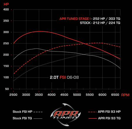 Please note: All power figures are produced from APR, LLC marketing materials. Depending on your vehicle condition, fuel (AKI), & environmental factors the results may vary.