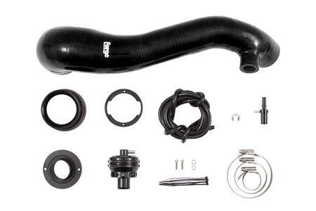 Due to the exposed position of the OEM boost pipe and the nature of heat cycle, the plastic that the OEM pipe is made from can deteriorate over time, becoming brittle and susceptible to boost leaks. This kit totally replaces this plastic pipe from turbo to manifold with a silicone hose (available in a choice of colours!).