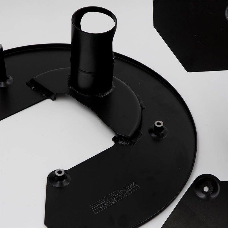 Designed to be different, these brake cooling backing plates have an air chamber designed into them to guide airflow into the bell of the disc. This is critical for proper air flow to cool the disc evenly and thoroughly. Other designs simply guide the air to the back face of the disc, which only cools one face and can lead to discs cracking and warping.