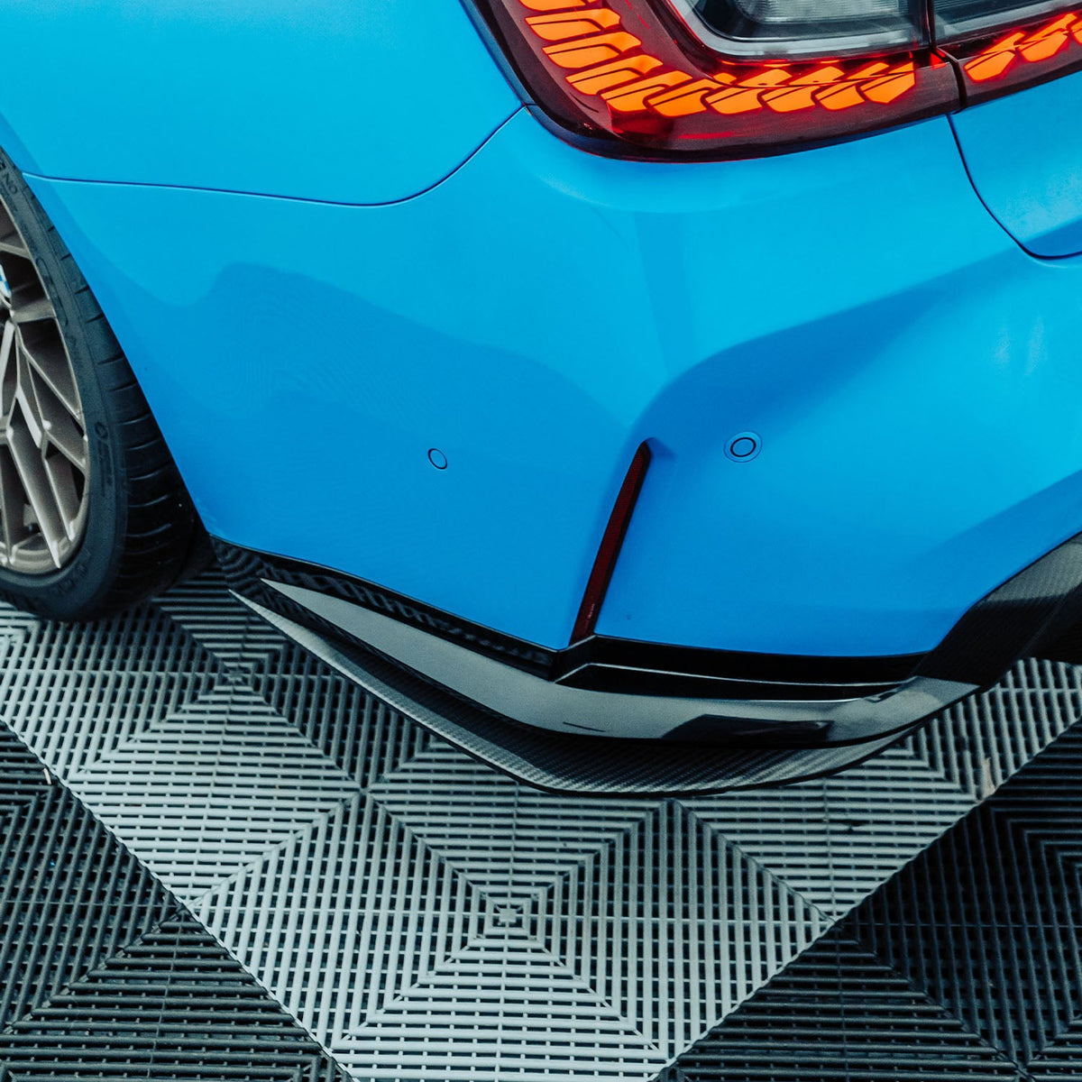 📞 Ask an Expert!The MHC+ gloss carbon fibre SS1 rear side splitters for the BMW G80, and G81 M3 are aggressive rear-end modifications that give the G80 a wider, lower and more hunkered-down look. Installing the SS1 rear side splitters by MHC+ is a great-value way to give your G8X M3 more presence on the road. These carbon exterior components work perfectly with the MHC+ SK1 side skirts as they follow the low and aggressive line around to the rear of the vehicle. They also enhance our range of MHC+ pre-preg carbon fibre rear diffusers for the BMW G8X M3.