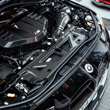 Transform your G80 M3 or G82 M4's engine bay with a pre-preg carbon fibre replacement radiator cooling shroud slam panel from MHC+. Manufactured from lightweight pre-preg carbon fibre.
