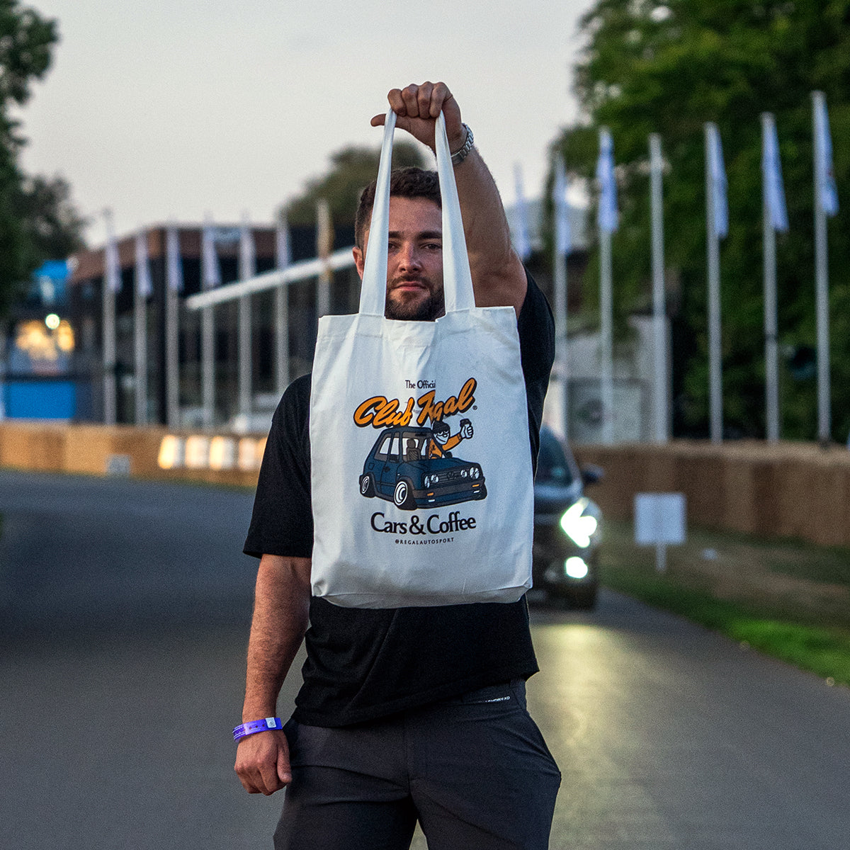Carry the spirit of Cars & Coffee with you wherever you go. Featuring the same clean, Mk2 Golf design as our best-selling Club Regal T-shirt, this lightweight tote bag is perfect for car meets, daily errands, or casual weekends.