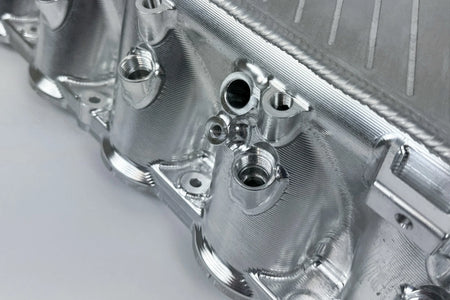 Top Feed Port Injection with Included Fuel Rail & Individual Nitrous / Methanol Injector Ports: The CSF Manifold includes an extruded fuel rail which can be attached to the outlet side of the manifold. The AN-8 fuel rail comes with feed and return -8 internal hex plug fittings from Radium Engineering for a plug and play installation. A 1/8th NPT port on each cylinder runner can be used for nitrous or methanol injection. The CSF manifold allows for maximum spray control and even spray distribution throughout the engine.
