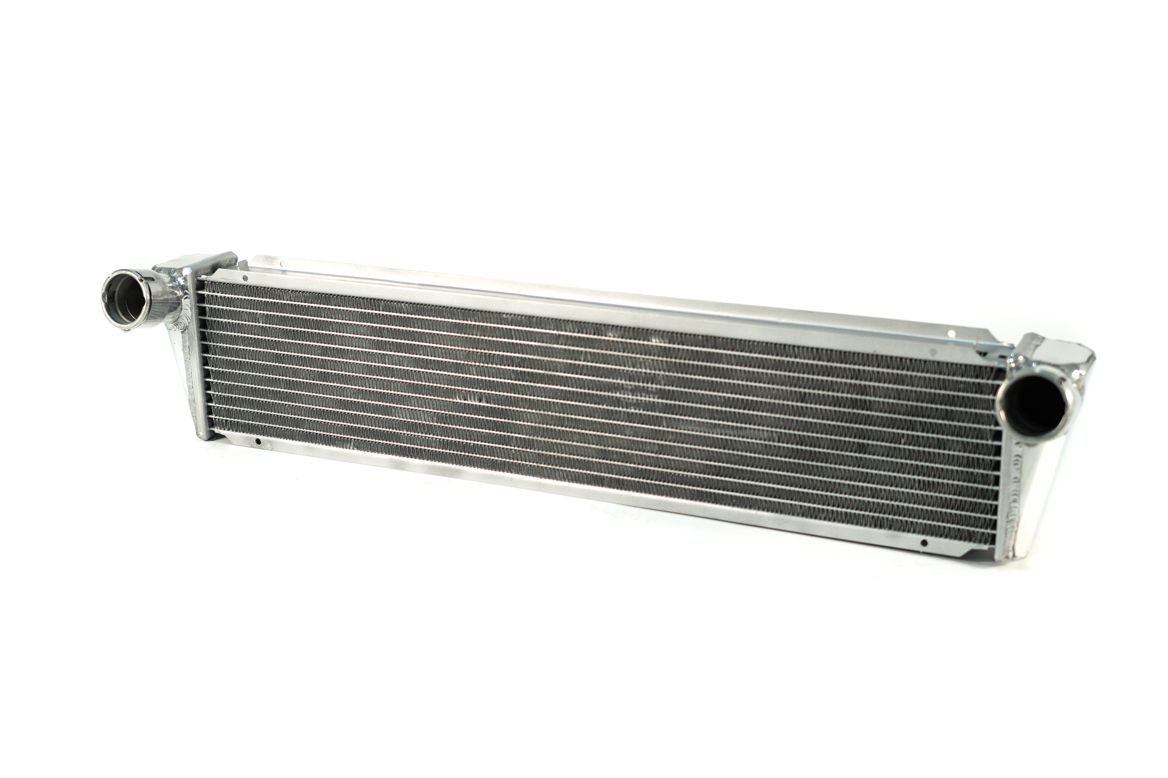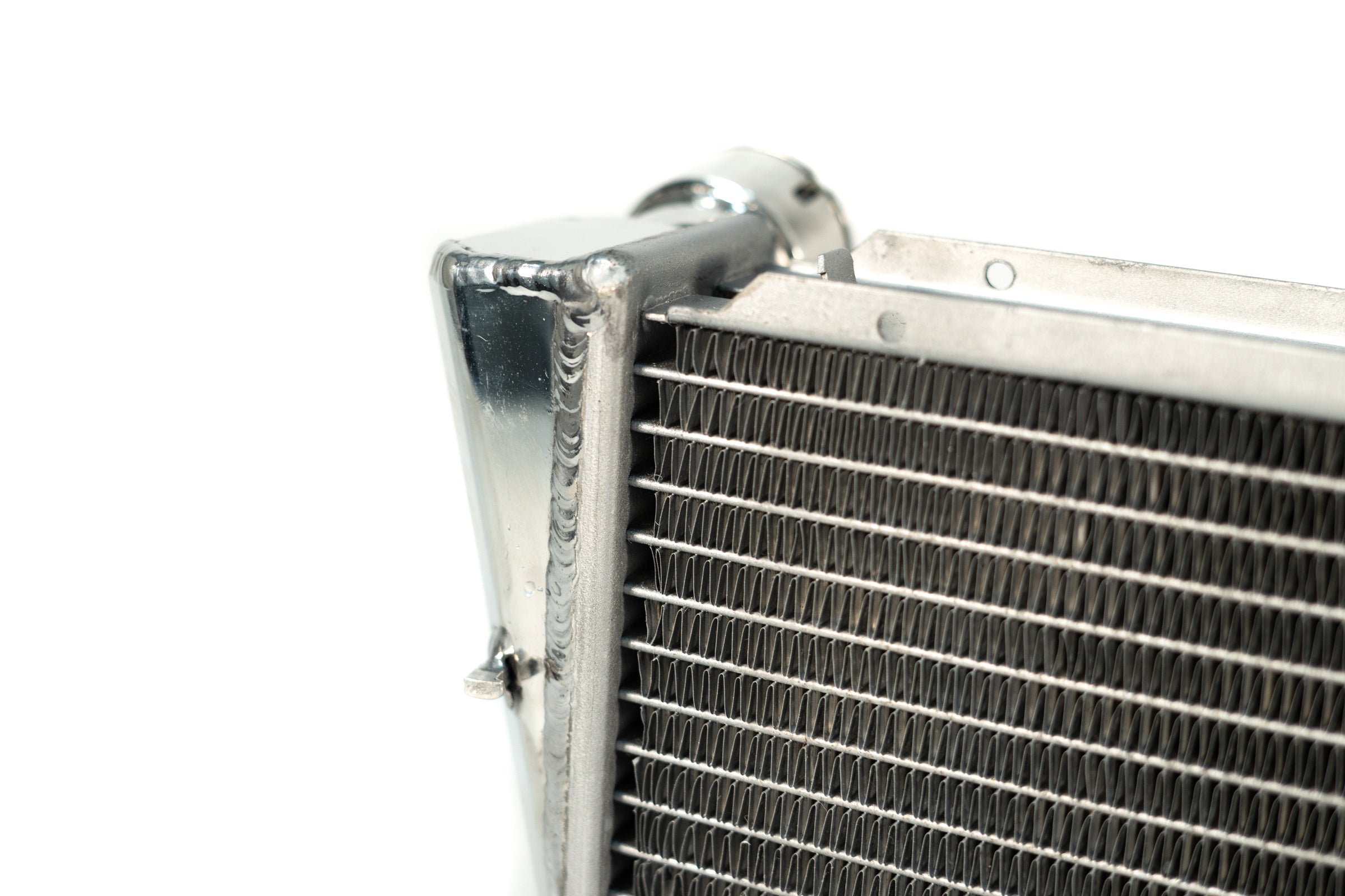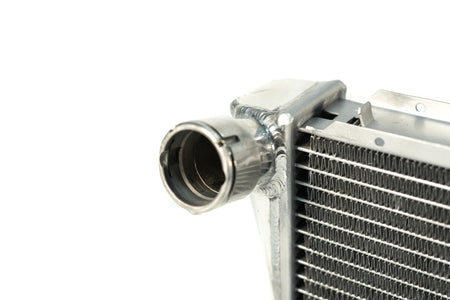 CSF has over 5 decades of experience manufacturing radiators. So when it comes to keeping your engine cool and your 997 911 / 987 Boxster/Cayman running at its best, a CSF High-Performance All-Aluminum Radiator is the obvious choice. Designed to perform on the street or at the track, a performance radiator is a must-have for both high horsepower builds as well as race vehicles which need added cooling performance in motorsports environments. This radiator features a 2-Row core with CSF's exclusive B-Tube Technology: Unlike a regular oval shape "O" type radiator tube, CSF uses a specially engineered tube in the shape of a "B". These "B-tubes" are carefully formed and then brazed over the seam to seal. CSF is able to use thinner and lighter aluminum material (with better cooling efficiency) because this design is actually stronger than normal "O" shape tubes that are welded. The design (inlet in the middle of the tube that is seam brazed) increases the heat transfer surface area of the tubes by approximately 15% over regular tubes - producing the efficiency of two smaller tubes vs. one large tube within the same space criteria. With "B-tubes" you are able to get "dual liquid laminar flow". CSF also uses ultra efficient multi louvered fins that are carefully and precisely aligned to maximize airflow through each radiator core. Fin specifications are carefully measured and calculated for each application, and tested for maximum heat rejection efficiency in our wind-tunnel lab.The CSF 997 911 / 987 Boxster/Cayman radiator is a true "Drop-in fit" design requiring no modifications to install. OE style brackets are all CNC machined and welded for the best durability possible. Inlet/Outlet connections are designed to match the OE connections so you can reuse OEM hoses or aftermarket. Trust the cooling experts at CSF for the best performing, highest-quality, and most reliable radiators.