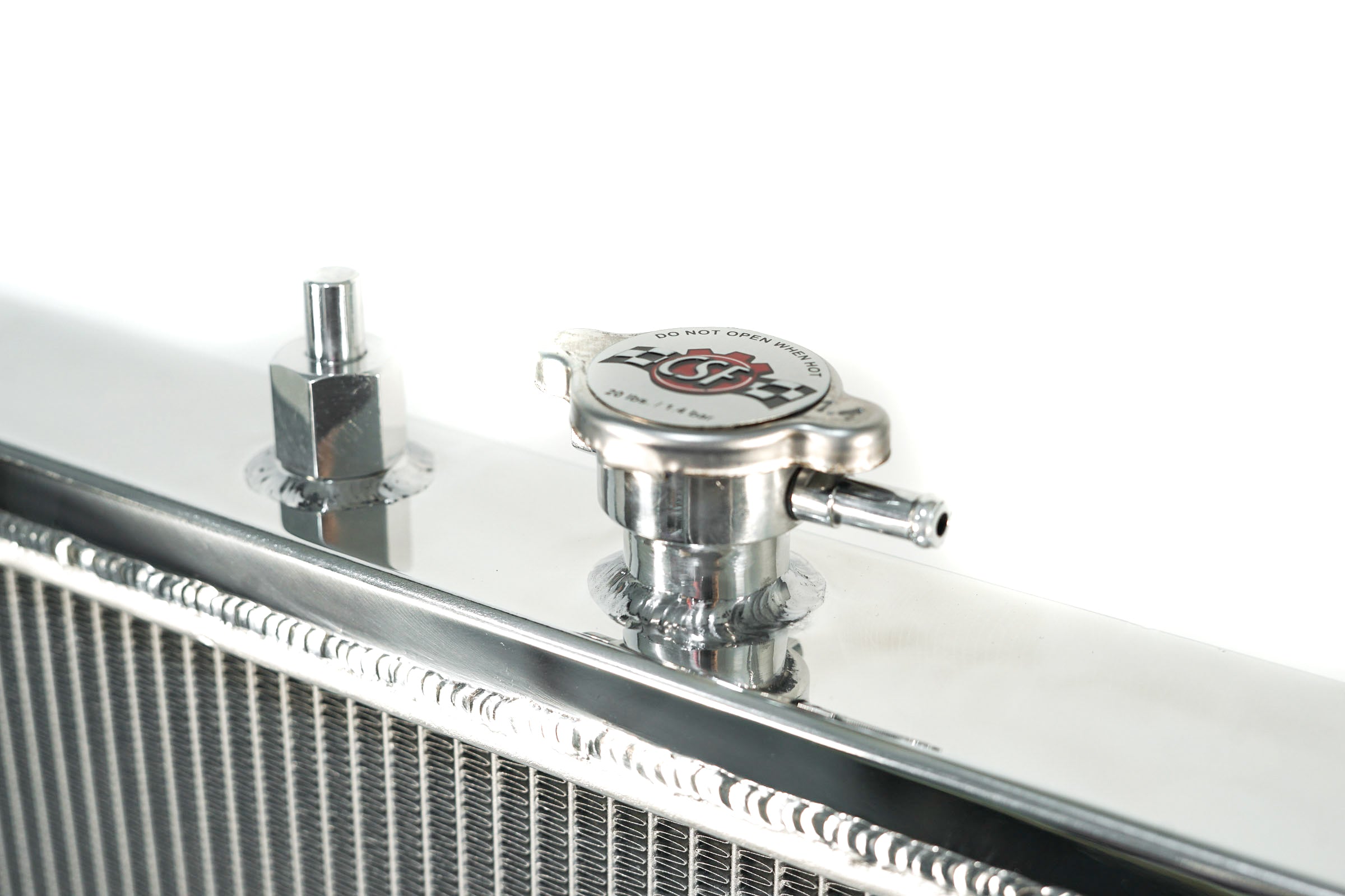 CSF has over 5 decades of experience manufacturing radiators. So when it comes to keeping your engine cool and your K-Swapped Civic/Integra running at its best, a CSF High-Performance All-Aluminum Radiator is the obvious choice. Designed to perform on the street or at the track, a performance radiator is a must-have for both high horsepower builds as well as race vehicles which need added cooling performance in motorsports environments. This radiator features a 2-Row core with CSF's exclusive B-Tube Technology: Unlike a regular oval shape "O" type radiator tube, CSF uses a specially engineered tube in the shape of a "B". These "B-tubes" are carefully formed and then brazed over the seam to seal. CSF is able to use thinner and lighter aluminum material (with better cooling efficiency) because this design is actually stronger than normal "O" shape tubes that are welded. The design (inlet in the middle of the tube that is seam brazed) increases the heat transfer surface area of the tubes by approximately 15% over regular tubes - producing the efficiency of two smaller tubes vs. one large tube within the same space criteria. With "B-tubes" you are able to get "dual liquid laminar flow". CSF also uses ultra efficient multi louvered fins that are carefully and precisely aligned to maximize airflow through each radiator core. Fin specifications are carefully measured and calculated for each application, and tested for maximum heat rejection efficiency in our wind-tunnel lab.The CSF K-Swapped Civic/Integra radiator is a true "Drop-in fit" design requiring no modifications to install. OE style brackets are all CNC machined and welded for the best durability possible. Inlet/Outlet connections are designed to match the OE connections so you can reuse OEM hoses or aftermarket. Trust the cooling experts at CSF for the best performing, highest-quality, and most reliable radiators.