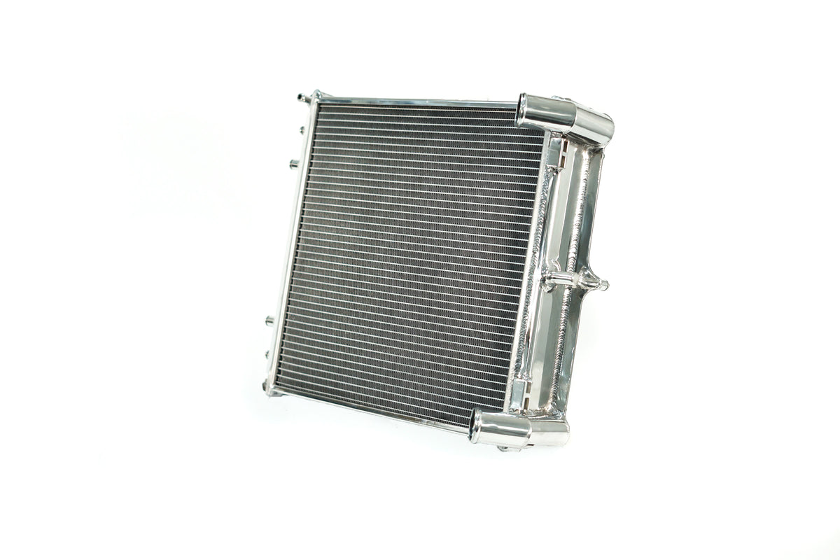 CSF has over 5 decades of experience manufacturing radiators. So when it comes to keeping your engine cool and your 996 911/986 Boxster running at its best, a CSF High-Performance All-Aluminum Radiator is the obvious choice. Designed to perform on the street or at the track, a performance radiator is a must-have for both high horsepower builds as well as race vehicles which need added cooling performance in motorsports environments. This radiator features a 2-Row core with CSF's exclusive B-Tube Technology: Unlike a regular oval shape "O" type radiator tube, CSF uses a specially engineered tube in the shape of a "B". These "B-tubes" are carefully formed and then brazed over the seam to seal. CSF is able to use thinner and lighter aluminum material (with better cooling efficiency) because this design is actually stronger than normal "O" shape tubes that are welded. The design (inlet in the middle of the tube that is seam brazed) increases the heat transfer surface area of the tubes by approximately 15% over regular tubes - producing the efficiency of two smaller tubes vs. one large tube within the same space criteria. With "B-tubes" you are able to get "dual liquid laminar flow". CSF also uses ultra efficient multi louvered fins that are carefully and precisely aligned to maximize airflow through each radiator core. Fin specifications are carefully measured and calculated for each application, and tested for maximum heat rejection efficiency in our wind-tunnel lab.The CSF 996 911/986 Boxster radiator is a true "Drop-in fit" design requiring no modifications to install. OE style brackets are all CNC machined and welded for the best durability possible. Inlet/Outlet connections are designed to match the OE connections so you can reuse OEM hoses or aftermarket. Trust the cooling experts at CSF for the best performing, highest-quality, and most reliable radiators.