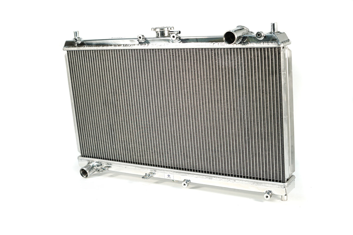 CSF has over 5 decades of experience manufacturing radiators. So when it comes to keeping your engine cool and your NB Miata running at its best, a CSF High-Performance All-Aluminum Radiator is the obvious choice. Designed to perform on the street or at the track, a performance radiator is a must-have for both high horsepower builds as well as race vehicles which need added cooling performance in motorsports environments. This radiator features a 2-Row core with CSF's exclusive B-Tube Technology: Unlike a regular oval shape "O" type radiator tube, CSF uses a specially engineered tube in the shape of a "B". These "B-tubes" are carefully formed and then brazed over the seam to seal. CSF is able to use thinner and lighter aluminum material (with better cooling efficiency) because this design is actually stronger than normal "O" shape tubes that are welded. The design (inlet in the middle of the tube that is seam brazed) increases the heat transfer surface area of the tubes by approximately 15% over regular tubes - producing the efficiency of two smaller tubes vs. one large tube within the same space criteria. With "B-tubes" you are able to get "dual liquid laminar flow". CSF also uses ultra efficient multi louvered fins that are carefully and precisely aligned to maximize airflow through each radiator core. Fin specifications are carefully measured and calculated for each application, and tested for maximum heat rejection efficiency in our wind-tunnel lab.The CSF NB Miata radiator is a true "Drop-in fit" design requiring no modifications to install. OE style brackets are all CNC machined and welded for the best durability possible. Inlet/Outlet connections are designed to match the OE connections so you can reuse OEM hoses or aftermarket. Trust the cooling experts at CSF for the best performing, highest-quality, and most reliable radiators.