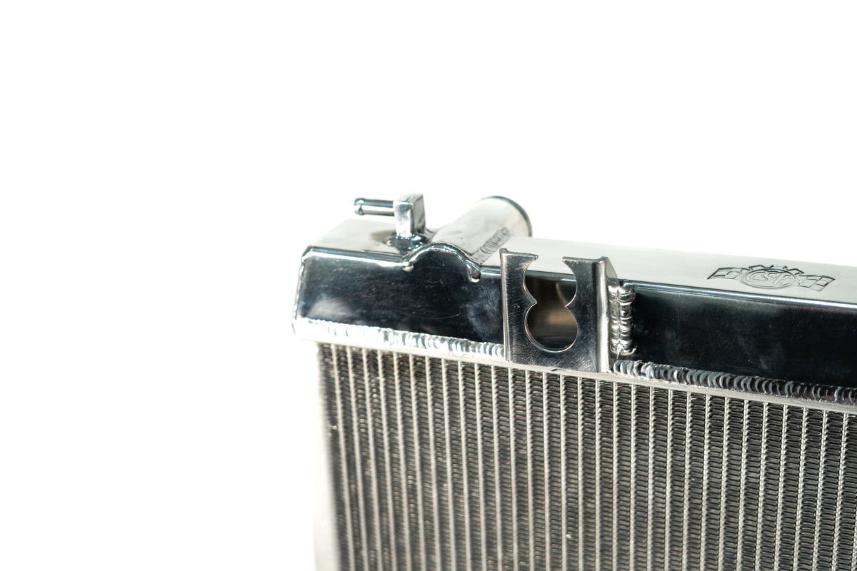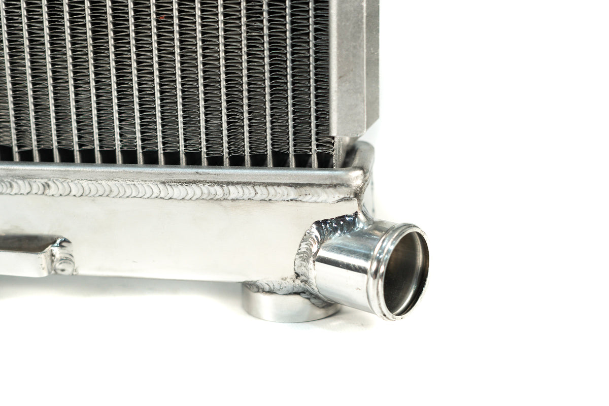 CSF has over 5 decades of experience manufacturing radiators. So when it comes to keeping your engine cool and your E30 M3 running at its best, a CSF High-Performance All-Aluminum Radiator is the obvious choice. Designed to perform on the street or at the track, a performance radiator is a must-have for both high horsepower builds as well as race vehicles which need added cooling performance in motorsports environments. This radiator features a 2-Row core with CSF's exclusive B-Tube Technology: Unlike a regular oval shape "O" type radiator tube, CSF uses a specially engineered tube in the shape of a "B". These "B-tubes" are carefully formed and then brazed over the seam to seal. CSF is able to use thinner and lighter aluminum material (with better cooling efficiency) because this design is actually stronger than normal "O" shape tubes that are welded. The design (inlet in the middle of the tube that is seam brazed) increases the heat transfer surface area of the tubes by approximately 15% over regular tubes - producing the efficiency of two smaller tubes vs. one large tube within the same space criteria. With "B-tubes" you are able to get "dual liquid laminar flow". CSF also uses ultra efficient multi louvered fins that are carefully and precisely aligned to maximize airflow through each radiator core. Fin specifications are carefully measured and calculated for each application, and tested for maximum heat rejection efficiency in our wind-tunnel lab.The CSF E30 M3 radiator is a true "Drop-in fit" design requiring no modifications to install. OE style brackets are all CNC machined and welded for the best durability possible. Inlet/Outlet connections are designed to match the OE connections so you can reuse OEM hoses or aftermarket. Trust the cooling experts at CSF for the best performing, highest-quality, and most reliable radiators.