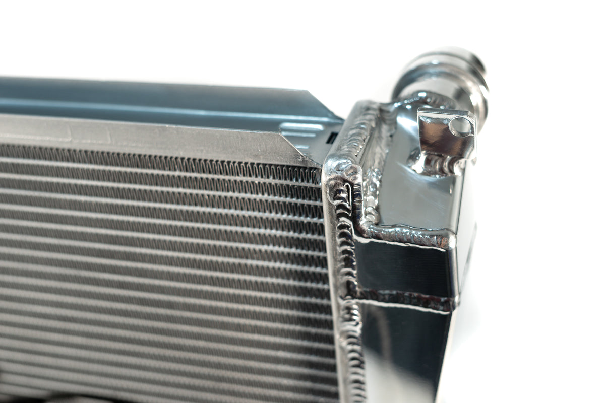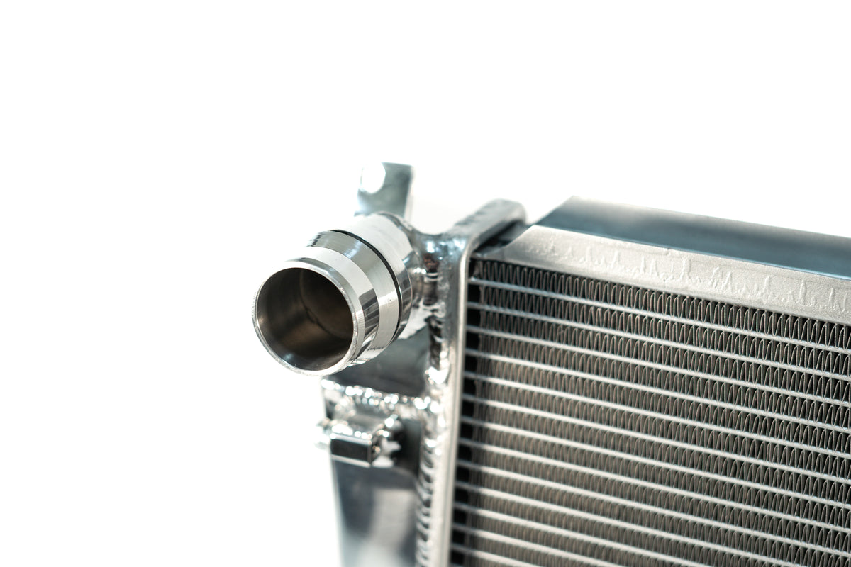 CSF has over 5 decades of experience manufacturing radiators. So when it comes to keeping your engine cool and your E46 M3 running at its best, a CSF High-Performance All-Aluminum Radiator is the obvious choice. Designed to perform on the street or at the track, a performance radiator is a must-have for both high horsepower builds as well as race vehicles which need added cooling performance in motorsports environments. The Triple-Pass Flow Structure allows the coolant to flow across the core of the radiator three times before exiting for lowest outlet temperatures possible. This radiator features a 2-Row core with CSF's exclusive B-Tube Technology: Unlike a regular oval shape "O" type radiator tube, CSF uses a specially engineered tube in the shape of a "B". These "B-tubes" are carefully formed and then brazed over the seam to seal. CSF is able to use thinner and lighter aluminum material (with better cooling efficiency) because this design is actually stronger than normal "O" shape tubes that are welded. The design (inlet in the middle of the tube that is seam brazed) increases the heat transfer surface area of the tubes by approximately 15% over regular tubes - producing the efficiency of two smaller tubes vs. one large tube within the same space criteria. With "B-tubes" you are able to get "dual liquid laminar flow". CSF also uses ultra efficient multi louvered fins that are carefully and precisely aligned to maximize airflow through each radiator core. Fin specifications are carefully measured and calculated for each application, and tested for maximum heat rejection efficiency in our wind-tunnel lab.The CSF E46 M3 radiator is a true "Drop-in fit" design requiring no modifications to install. OE style brackets are all CNC machined and welded for the best durability possible. Inlet/Outlet connections are designed to match the OE connections so you can reuse OEM hoses or aftermarket.
