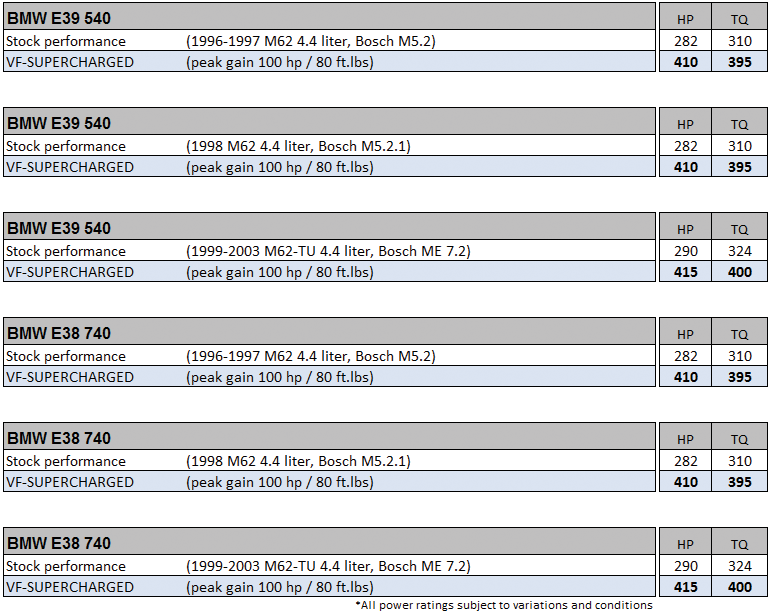 VF engineers spent over 12 months software testing the BMW Bosch ECUs to perfect the smoothness and functionality of the supercharged vehicle. Software flash technology and latest BMW file versions have all been employed to provide the cleanest and the most reliable method of software installation with the use of an optional DIY programming cable and email-able software. Testing the software included extensive road and dyno test cycles, with acceleration and deceleration tests for driveability smoothness and ECU fuel management. All test cars were put through long term full throttle testing in conditions varying from wet cold climates to hot dry Arizona desert temperature for safe-optimal air fuel ratios and knock activity monitoring. Competently-written ECU software has allowed VF to fully explore the potential of the BMW engine, making over 40% more power in most applications.