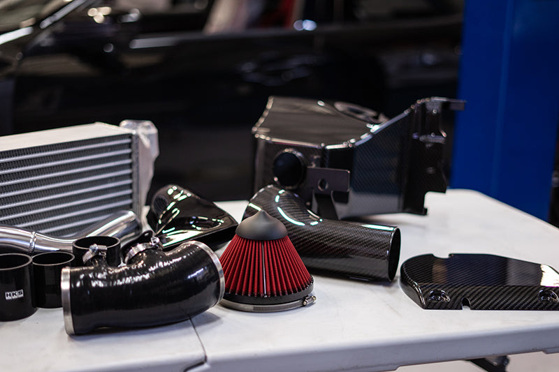 The Honda FK8 Type R intake is the result of extensive design iteration through dyno testing and flow analysis. It was developed to achieve two objectives – 1) Maintain low inlet temperatures. 2) De-restrict the turbo inlet path. The first objective was met by enclosing the filter inside a carbon airbox and using the stock seal against the hood to block out the heat soak from the engine. Since the intake sits directly behind the radiator it is crucial that the filter is not exposed which would result in a loss of power through high IAT. The second objective was met by removing the flexible tubing and optimising the inlet path with a Venturi stack connected directly to the filter. Furthermore, we added a second inlet to the airbox with a scoop pulling in air from the inner wing area. This almost doubles the total cross sectional area through which the turbo can draw from as compared with the single entry on the stock system. Our carbon airbox enclosure has been designed to maximise the use of the available volume and block all sources of heat. The resulting performance gains and aesthetics are industry leading for the FK8 Type R.
