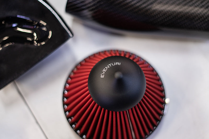 The standard airbox draws in air from a single entry duct behind the front bumper. The size of this inlet is very small at approximately 35cm^2. The demand from the turbo results in this opening becoming a restriction. However, simply opening the filter inside the engine bay is detrimental since the filter position is directly behind the radiator and once the engine warms up - the filter will become quickly saturated with heat. Our intake system solves this issue by keeping the filter enclosed inside an airbox and adding a secondary feed which opens the inlet area by another 28cm^2. This coupled with our Venturi Filter stack for smooth flow results in an immediate gain across the entire RPM range of 14-20hp. The dyno graph below shows the comparison between the stock airbox and the Eventuri intake system on a standard car with standard map and exhaust. Dyno runs were done back to back on the same day and with the hood closed. The following dyno results are from independent tuners around the World: