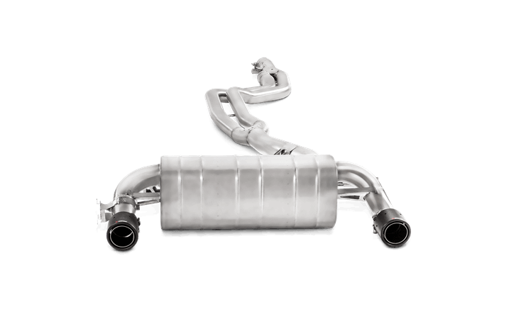 Evolution exhaust systems for the BMW 440i are the result of the perfect integration of expertise, the best technology, and the use of the finest materials. Made of austenitic stainless steel, these systems feature a  layout with two central mandatory link pipes replacing the single stock pipe. The system is finished with carbon fibre tailpipes. This sporty elegance makes this Bavarian machine stand out from the rest and offers the taste of a more powerful version, accentuated with the additional power gains and weight losses of the Evolution performance exhaust system. The dual-mode ECU-controlled valve exhaust from Akrapovič offers stock-level sound at normal cruising, and a joyful deep sporty note when driving the 440i more dynamically. The Evolution systems replace the stock exhaust from the catalytic converters back.Please be aware that both part numbers: MTP-BM/SS/2H and E-BM/SS/2 have to be ordered! The system is splitted in 2 codes only because of packaging issues.