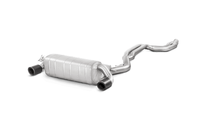The Evolution Line exhaust system will propel the BMW M240i to the next step of performance tuning due to an increase in torque and power. Impeccably designed to fit perfectly within the lines of the car, this austenitic stainless steel system is finished with hand-crafted carbon-fibre tailpipes to increase the visual impact. It has a layout incorporating two central link pipes to replace the stock single version, designed for optimum flow of the exhaust gases. A dual-mode ECU-controlled valve manages the sound levels, which ultimately delivers a deep and fulfilling sporty note as the revs rise. EC-compliant and easy to install, the Evolution Line system is a perfect accompaniment to an already spectacular car.Exhaust fits also on vehicles with X-drive.Please be aware that both part numbers: MTP-BM/SS/4H and E-BM/SS/3 have to be ordered! The system is splitted in 2 codes only because of packaging issues.