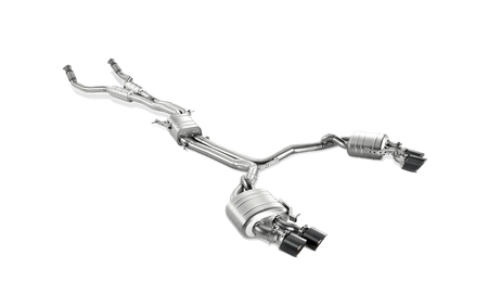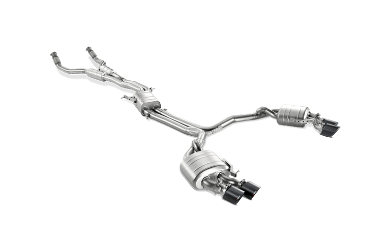 The Audi S range of cars features high-performance V8 engines that are a perfect match for the Akrapovič Evolution exhaust systems.Styled and designed in-house by Akrapovič’s engineers, the Audi S range of Evolution exhausts include valves that are steered through electric actuators designed to alter their position depending on the vehicle’s driving program and the driver’s style. They can also be changed in the car’s individual program settings.The addition of an Evolution exhaust will increase power and torque levels, while decreasing weight and adding the unique Akrapovič sound. Evolution exhausts give the car a noticeably different character, with a deep sound at lower revs and a sportier note as the revs rise.With four, superbly styled round carbon-fibre tailpipes, the Evolution system looks as good as it works on Audi S models.This cat-back performance exhaust system leaves the stock catalytic converters in place, so there is no need to remap the ECU. Its easy-to-fit instructions make installation a simple, plug-and play task.