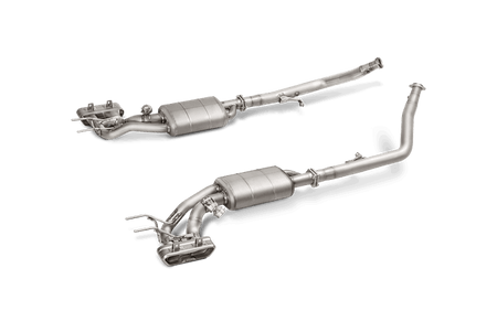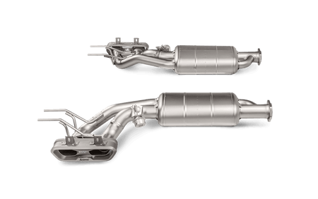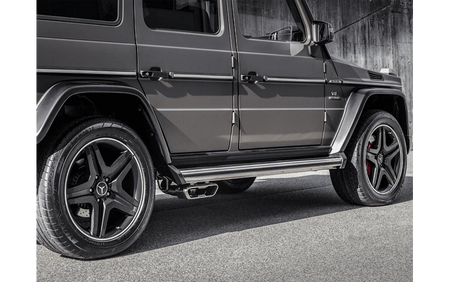 The Evolution Line (Titanium) exhaust system for the Mercedes-AMG G 63 is Akrapovič’s first venture into the high-performance off-road market. It is constructed with high-grade durable lightweight titanium to reduce weight, which is then sandblasted and coated for increased durability. This system is beautifully finished with specially-designed tailpipes exiting on either side of the vehicle, perfectly routed to fit within limited space. It delivers a unique sound for a sporty edge, specially programmed by the Akrapovič Sound Engineers, with a pair of exhaust valves behind the rear mufflers to provide optimal control of the exhaust tones while increasing power and torque levels. This system is ECE type approved.An optional Akrapovič Sound Kit is available to control the different sound settings. Optional downpipes are also offered to provide full exhaust-tuning capabilities.