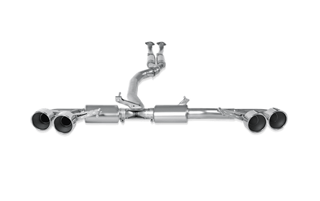 The Evolution performance exhaust, made of our proprietary titanium, is an even better match for the GT-R, complementing its race-inspired looks. Substantial work by the R&D team was required to achieve impressive horsepower and torque output increase over stock, with gains being realized at the redline and throughout the entire rpm range. There are substantial reductions in weight achieved through careful design and the use of light titanium. The power-to-weight ratio improves on both fronts: power increase and weight reduction. The GT-R deserves a great sound and the Akrapovič Evolution system delivers it: deep, loud, and aggressive but without droning. Complete the look with a set of four exquisite tailpipes in titanium or carbon fibre.THIS PRODUCT DOES NOT MEET EMISSION COMPLIANCE REQUIREMENTS FOR STREET OR HIGHWAY USE.When replacing the stock exhaust that includes valves, then the ECU remapping is mandatory!