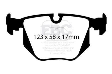Designed for premium street driving offering better brake effect up to 600-degrees C (1100-degrees F). EBC Greenstuff has a high initial brake effect and gives drivers confidence from first application of the brake pedal. There is no such thing as a NO DUST pad. The very nature of how a brake works requires that some dust be generated to avoid rotor vibration (shimmying). The EBC pad creates less dust and dust is more easily washed off than most. All pads create more dust as they are bedding in especially if rotors are worn. Nominal friction coefficient 0.55. For heavier faster cars and vehicles above 200bhp we strongly recommend Redstuff which DOES offer much less dust.