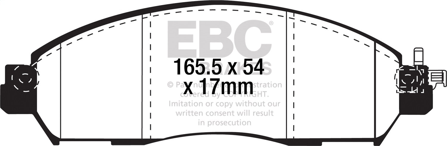 Designed for premium street driving offering better brake effect up to 600-degrees C (1100-degrees F). EBC Greenstuff has a high initial brake effect and gives drivers confidence from first application of the brake pedal. There is no such thing as a NO DUST pad. The very nature of how a brake works requires that some dust be generated to avoid rotor vibration (shimmying). The EBC pad creates less dust and dust is more easily washed off than most. All pads create more dust as they are bedding in especially if rotors are worn. Nominal friction coefficient 0.55. For heavier faster cars and vehicles above 200bhp we strongly recommend Redstuff which DOES offer much less dust.
