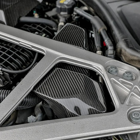 Indiv carbon fibre ECU battery terminal cover adds a premium touch to your BMW's engine bay. Constructed from pre-preg carbon fibre, this engine bay accessory matches other BMW M Performance 2x2 carbon components found in the G8X models as well as Indiv's own carbon engine cover. This ECU cover replaces the standard black plastic cover.