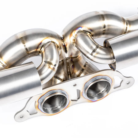 The system then merges into another key point, collecting the gasses and creating a scavenging effect whilst targeting unwanted drone frequencies then heading back out into a twin 70mm to the factory 991 GT style 3-bolt flange allowing customers to select any tip using the OEM style 3-bolt flange.