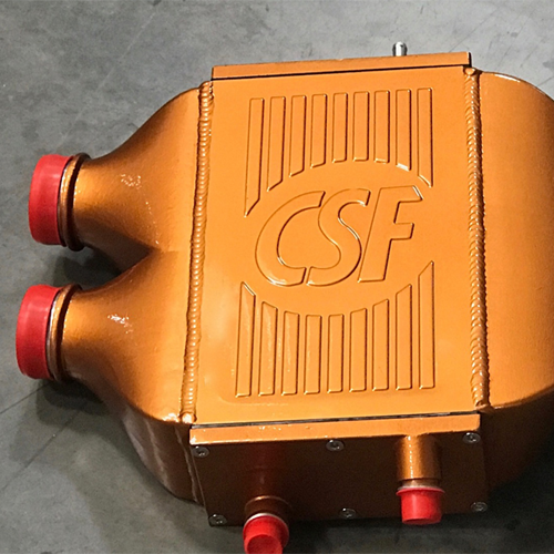 Multiple air dividers cast into both the hot/cold side endtanks for optimized air flow through the custom designed CSF liquid-to-air intercooler core (CFD analysis and testing completed to ensure optimal performance)