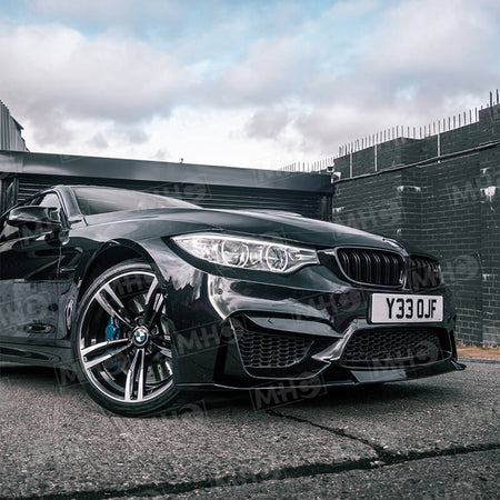 MHC Black BMW CS Style Front Splitter In Gloss Black for the F80 M3 and F82 M4. This front lip makes the 'CS-look' accessible to all BMW M3 and M4 owners. It captures the essence of the insane performance capabilities of BMW's CS models, translating this aesthetic to the standard M-vehicles. The overall look is sleek, subtly aggressive and clean, making this one of our personal favourite front splitters.