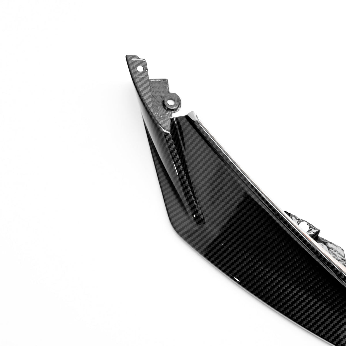 The design of this carbon fibre front lip is evolution, not revolution. You can see the SP1's lines in the centre that flow into the vehicle's front ducts, however, this has been refined for the SP2. This pre-preg carbon fibre splitter is slightly more aggressive for BMW owners looking to give their G80 G81 M3 or G82 G83 M4 a more imposing front end. Notably, the SP2 front lip replaces the gloss black sides on the front bumper for a more premium look. The 3-piece design has a number of benefits including easier installation, reduced manufacturing costs and, therefore, a lower retail price for the consumer. The 3-piece construction also reduces shipping rates for owners ordering from outside the UK.