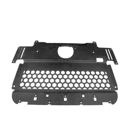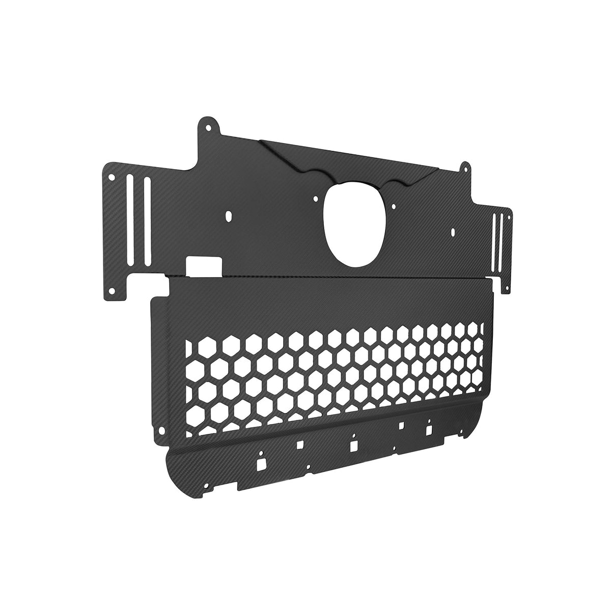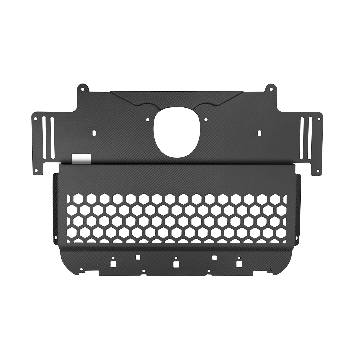 Keep your vehicle's factory oil cooler protected with the MHC+ full replacement carbon fibre oil cooler guard for the BMW G87 M2. The factory oil cooler is located right under your vehicle's front bumper vulnerable to scraping and hitting the ground or speed humps etc. BMW fits the vehicle with a cheap plastic guard that easily cracks and breaks away and can actually damage the stock oil cooler itself.