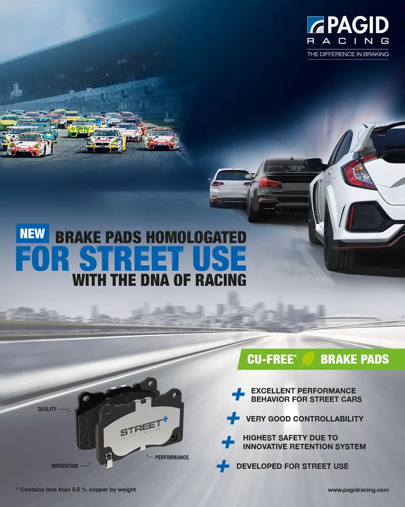 Similarly to PAGID Racing brake pads, STREET+ by PAGID Racing employs a dual retention system, with an adhesive bond and a unique mechanical system.