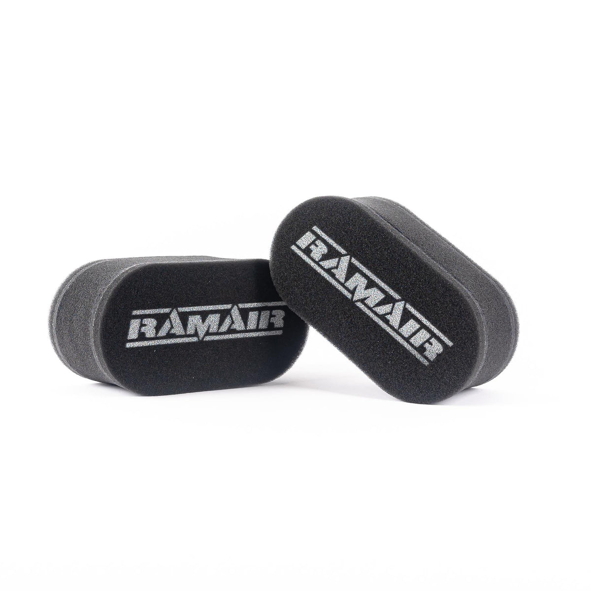 Ramair sock style air filters, which feature two holes cut out of the foam on the underside of the air filter.