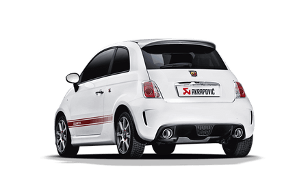Add a stainless steel Slip-On exhaust system and make the Abarth (1.4 16V T Jet) even faster, even more responsive, and give it an even more striking look and that unmistakable sporty Akrapovič sound. The biggest difference compared to stock is most noticeable when the optional Akrapovic sound kit for adjustable sound is used. When the exhaust valve is open, the sound becomes significantly deeper and tastefully louder, but still entirely without droning. Performance facts apply to the performance exhaust with the Akrapovic sound kit and open valves. The system without the Akrapovic sound kitᙦhas a point-welded block in the link pipe that prevents bypassing the muffler. Please note: when the bypass is unblocked, the EC type approval is not valid. Complete the look with a set of exquisite 115 mm tailpipes in either titanium or carbon fibre.EC tape approval is valid only for 312A1000 and 312A3000 engine type vehicle.Warning: This product will not fit on US spec Abarth.