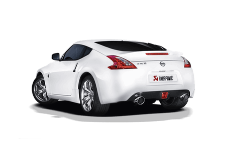 The 370Z from Nissan is a fine sports car in the tradition of Japanese muscle cars but benefits greatly from the Akrapovič treatment. Our finely crafted Slip-On axle back exhaust system is made of high-grade stainless steel and fits the original mounting points perfectly. Installation is a snap. There are power gains not just at or near redline, but across the entire rpm range. The Slip-On sport exaust produces a boost in performance, as well as a weight reduction when compared to stock. The Slip-On system generates a deeper-than-stock tone with the sporty sound you’d expect from the 3.7-liter high-revving engine. Complete the look with a set of two exquisite 125 mm tailpipes in sandblasted and coated titanium or carbon fibre.Exhaust can also be mounted on NISMO model.