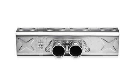 The Akrapovič Slip-On system is based on the same layout as the original exhaust system of the GT3 with valve control. The Slip-On contains a titanium muffler with two double round tailpipes. The muffler is easily installed on the original exhaust system. The Akrapovič Slip-On makes the GT3 more powerful and lighter, even though the exhaust system is not replaced entirely. The sound of its six-valve engine is also noticeably improved. The Slip-On exhaust system offers weight reduction in the rear of the Porsche and an increase in power. Two tailpipes, 100 mm in diameter, make it clear that the Akrapovič Slip-On system is no ordinary exhaust. The unique look is completed with a mandatory rear carbon fibre lip.