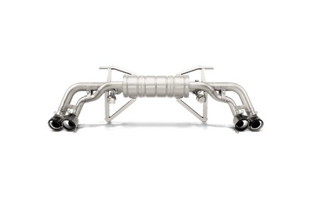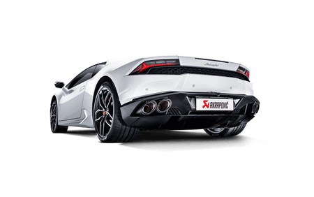 Following the success and experience gained from the Slip-On Line exhaust system that Akrapovič developed for the Lamborghini Gallardo, the new system for the Lamborghini Huracán takes this stunning car to new levels. Precision engineered from a high-grade titanium alloy, which is designed to significantly reduce weight and improve handling, the Slip-On Line has bigger main pipes than the standard system and a specially designed X-part (for cross-flow) in the muffler to reduce back-pressure, increasing power and torque levels right across the rev range. The unique growl from the naturally aspirated V10 engine is improved as the performance grows, delivering a distinctive note that thrills the senses, without any unwanted cabin noise. At lower revs and during cruise operation the valves are closed, producing a deeper and sharper exhaust note, but when the revs rise and the valves open, the full passionate soundtrack of the engine is released to show that the Huracán means business. This exquisite system is perfectly finished with four carbon fibre tailpipes, ensuring that this exhaust looks as good as it sounds and performs. THIS PRODUCT DOES NOT MEET EMISSION COMPLIANCE REQUIREMENTS FOR STREET OR HIGHWAY USE.