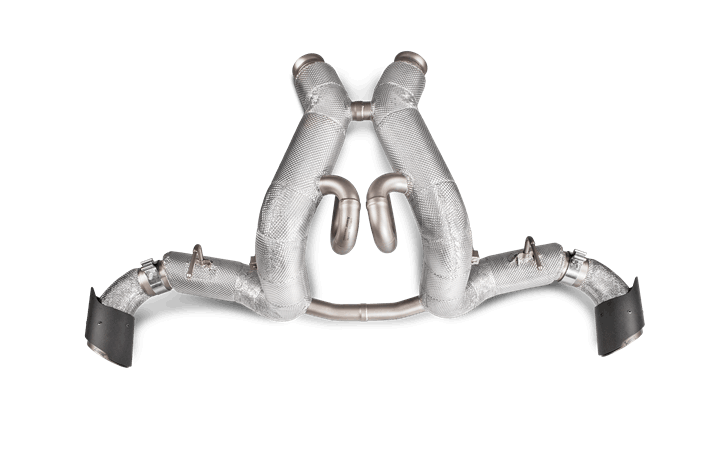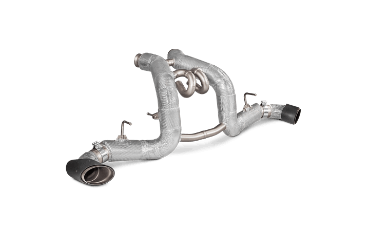An exquisite car deserves an exquisite exhaust, and the Slip-On Line (Titanium) for the McLaren is certainly that. It is made of special, lightweight, durable, and heat-resistant titanium alloys, all perfectly formed and shaped to fit the car. Bigger tubes deliver optimised gas flow, and the use of ultra-lightweight materials will significantly reduce the vehicle’s weight and enhance its handling. A distinctive coating offers an enhanced appearance, and the parts most exposed to heat feature special insulation for protection. With two flawlessly styled and finished handmade carbon-fibre tailpipes, which beautifully complement the titanium pipes, this exhaust is a work of art. It comes complete with a soundtrack that perfectly matches the car’s performance, ideally tuned to produce a unique sound colour and the celebrated Akrapovič signature sound.