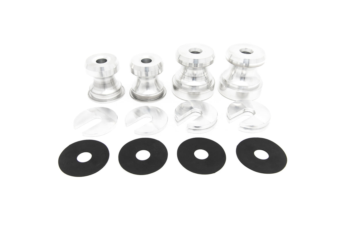 Our SPL SOLID Series Bushings are precision CNC machined from Billet 6061 Aluminium for an accurate fit. This kit also includes optional rubber isolation washers to reduce noise transfer from the subframe to the chassis.