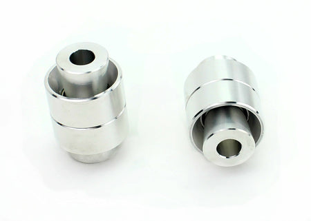 370Z/G37 Rear Mid Link Spherical Bushings replace the stock mushy rubber bushings with low-friction articulating spherical bearings, eliminating bushing flex and reducing friction.  This maintains optimum suspension geometry under load to improve handling and feedback and reduce unwanted toe changes.  These bearings are pressed into the OEM spring bucket arms can be used as a performance upgrade or when the OEM bolts get seized in the bushing.  OEM control arms not included.