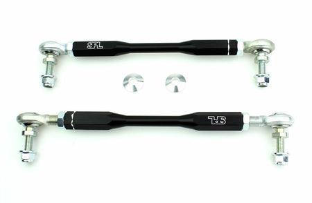 Our Endlinks are length adjustable to eliminate preload on the sway bars, which can result from uneven settling of springs or uneven suspension heights from corner weighting.  Black Anodized 6061-T6 Aluminium Turnbuckles work in conjunction with the left and right hand threaded rod ends for simple and precise adjustment.  These endlinks are perfect for street or race applications.