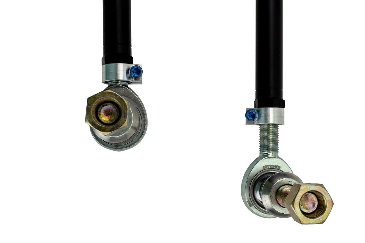 Our parts are engineered for maximum performance. Billet Aluminium alloy 2024 hex rods are precision CNC machined and gun drilled to reduce unsprung weight while maintaining high strength and stiffness. Our exclusive 360 degree Rotating Clamp design allows for easy access to quickly and precisely locking in your desired alignment settings. Blue Anodized Titanium hardware shaves even more unsprung weight from the arms and offers superior strength.