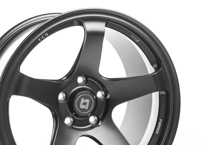 TITAN 7 T-C5 is the launch of our 2nd generation of Forged for All Manufacturing! Building up on the success of our catalogue, we now offer a 5 spoke clean contrast wheel design to our existing wheel line up. The 5 spoke design is very simple and elegant and leave it to the Titan 7 team to pack the wheel with technical features that take our “Forged for All” ideology to the next level. A full face design was chosen to give the wheel an excellent base for strength and rigidity. Next, we took the popular "I–Beam” spoke construction beyond the competition by connecting the machining work from the hub, spoke, and rim. This is a first for any wheel manufacturer. In keeping with our commitment to both lightness and strength, a back rigid spoke tracer was employed for additional strength and stiffness. You can see a sliver of material that goes a long way for performance. Extensive machining was also employed on all available areas to remove material for final weight optimization. All of this was made possible by applying 10,000 Tons of industry leading forging force. Standard Titan 7 features like our original beefed up inner rim flange for durability, bead seat knurling for traction, and contrast machined branding for authenticity lets your competition know you are serious with your vehicle build. Generation 2 Series Wheels include Centre Caps.