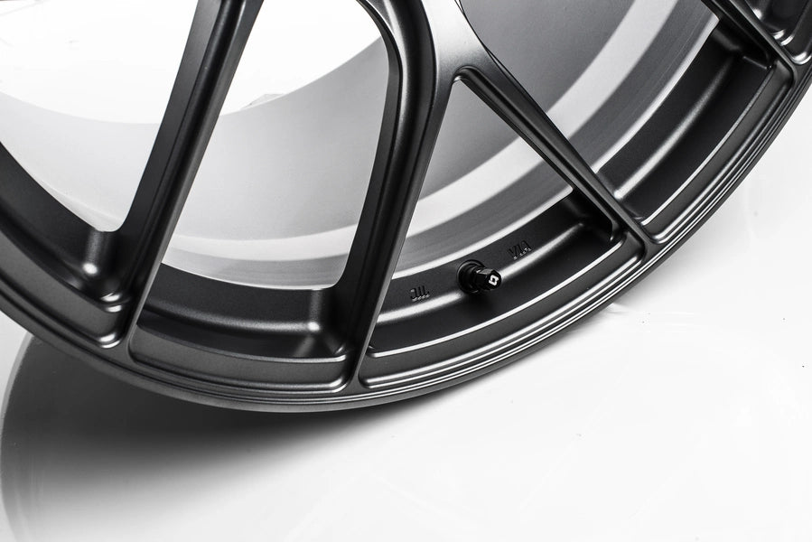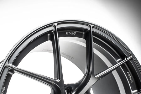 TITAN 7 T-S5 is a fully forged wheel designed completely with performance in mind. Pressurized with 10,000 TONS of industry leading pressure to give you a wheel that is incredibly strong while giving you all of the performance attributes you need in a track focused wheel. Upon close inspection you will notice strength adding ridges which have been strategically placed to give the wheel rigidity while keeping weight to a minimum. The split 5 spoke design was chosen for its motorsports heritage and track worthy structure. Each wheel from Titan 7 features traction improving bead seat knurling, beefed up inner rim flange for durability and strength, and logo machined accents. The T-S5 is designed for each application to clear all popular after market big brake kits while achieving maximum concavity. All wheels are durability tested according to JWL standards to ensure safety while you perform. Authentic performance from Titan 7. Forged for All.