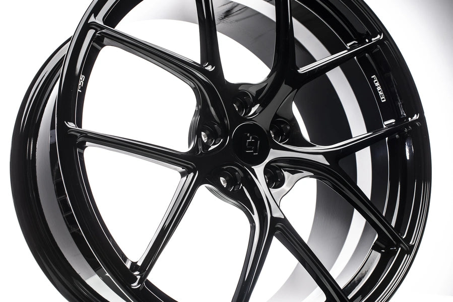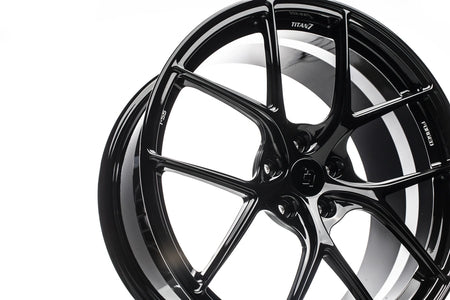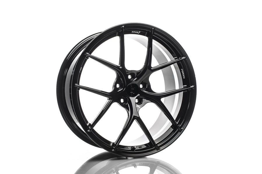 TITAN 7 T-S5 is a fully forged wheel designed completely with performance in mind. Pressurized with 10,000 TONS of industry leading pressure to give you a wheel that is incredibly strong while giving you all of the performance attributes you need in a track focused wheel. Upon close inspection you will notice strength adding ridges which have been strategically placed to give the wheel rigidity while keeping weight to a minimum. The split 5 spoke design was chosen for its motorsports heritage and track worthy structure. Each wheel from Titan 7 features traction improving bead seat knurling, beefed up inner rim flange for durability and strength, and logo machined accents. The T-S5 is designed for each application to clear all popular after market big brake kits while achieving maximum concavity. All wheels are durability tested according to JWL standards to ensure safety while you perform. Authentic performance from Titan 7. Forged for All.