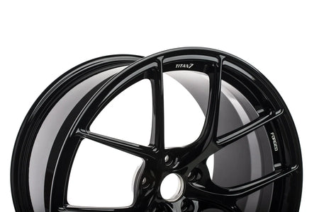 TITAN 7 T-S5 is a fully forged wheel designed completely with performance in mind. Pressurized with 10,000 TONS of industry leading pressure to give you a wheel that is incredibly strong while giving you all of the performance attributes you need in a track focused wheel. Upon close inspection you will notice strength adding ridges which have been strategically placed to give the wheel rigidity while keeping weight to a minimum. The split 5 spoke design was chosen for its motorsports heritage and track worthy structure. Each wheel from Titan 7 features traction improving bead seat knurling, beefed up inner rim flange for durability and strength, and logo machined accents. The T-S5 is designed for each application to clear all popular after market big brake kits while achieving maximum concavity. All wheels are durability tested according to JWL standards to ensure safety while you perform. Authentic performance from Titan 7. Forged for All.