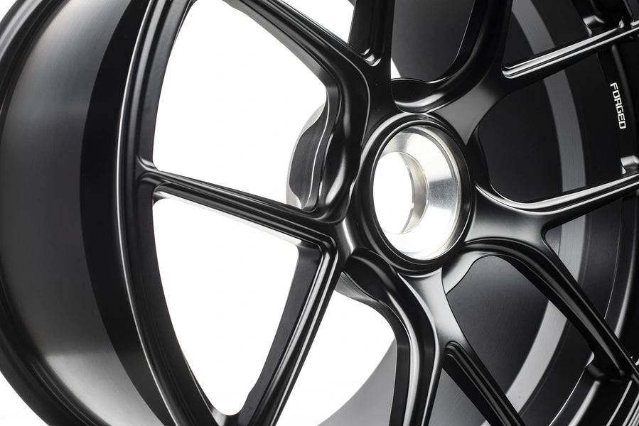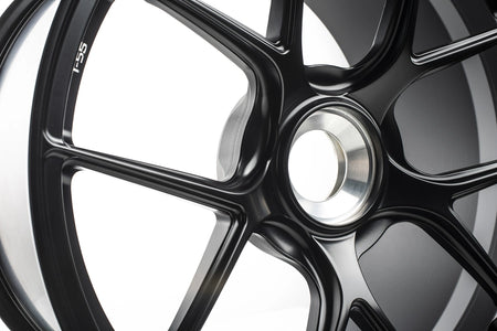 TITAN 7 T-S5 is a fully forged wheel designed completely with performance in mind. Pressurized with 10,000 TONS of industry leading pressure to give you a wheel that is incredibly strong while giving you all of the performance attributes you need in a track focused wheel. Upon close inspection you will notice strength adding ridges which have been strategically placed to give the wheel rigidity while keeping weight to a minimum. The split 5 spoke design was chosen for its motorsports heritage and track worthy structure. Each wheel from Titan 7 features traction improving bead seat knurling, beefed up inner rim flange for durability and strength, and logo machined accents. The T-S5 is designed for each application to clear all popular after market big brake kits while achieving maximum concavity. All wheels are durability tested according to JWL standards to ensure safety while you perform. Authentic performance from Titan 7. Forged for All.