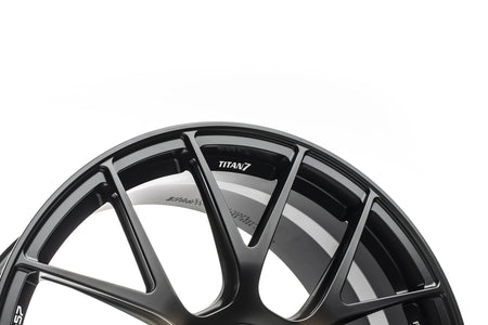 TITAN 7 T-S7 is a fully forged wheel designed completely with performance in mind. Pressurized with 10,000 TONS of industry leading pressure to give you a wheel that is incredibly strong while giving you all of the performance attributes you need in a track focused wheel. Upon close inspection you will notice “I- Beam” spokes which are strategically placed to give the wheel rigidity while keeping weight to a minimum. The split 7 spoke design was chosen for its motorsports heritage and track worthy structure. Each wheel from Titan 7 features our improved traction improving bead seat knurling, beefed up inner rim flange for durability and strength, and logo machined accents. The T-S7 is designed for each application to clear all popular after market big brake kits while achieving maximum concavity. All wheels are durability tested according to JWL standards to ensure safety while you perform. Authentic performance from Titan 7. Forged for All.