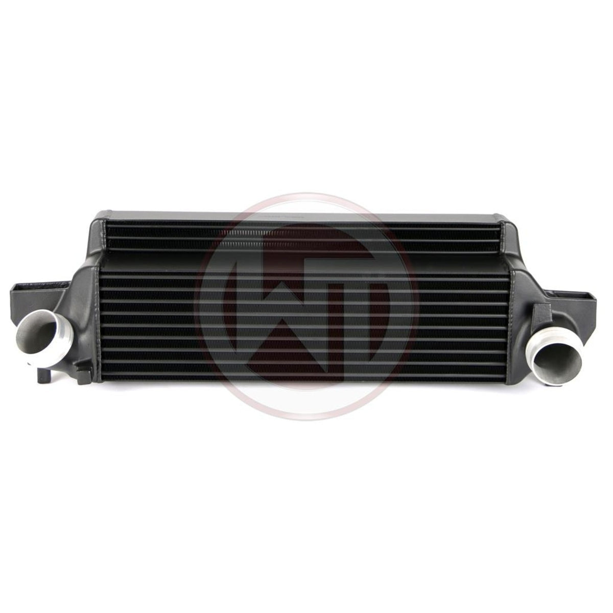 The competition intercooler kit has the following core dimensions (580mm x 225mm x 145mm [stepped] = 16.600cm³ / Stock IC 585mm x150mm x95mm, 8.300cm³). The high performance intercooler core provides a 30% larger frontal area and 47% more volume compared to the stock intercooler. Our engineers have increased the intercooler core size and efficiency, as well as improved the end tank design to remove any OEM bottlenecks, resulting in increased flow rating and charge cooling properties. Despite of it´s size the weight of the complete intercooler is only 9,65kg. Constructed of the highest quality Tube and Fin intercooler cores with inside turbulators combined with cast aluminum end tanks optimized by CFD for best possible internal airflow. This intercooler kit is the best choice when it comes to performance gains and low intake temperatures. Directly designed for the high requirements of Mini Cooper S JCW.
