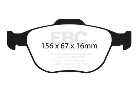 EBC Yellowstuff is an aramid fibre based brake compound with high brake effect form cold and is possibly one of the first ever compounds that can be used for STREET AND TRACK DRIVING. These pads do not require warm up but do get even stronger under the heat of hard driving. These are not a low dust pad and if your desire is for a low dust premium street use pad, you should consider EBC Redstuff.When considering full race use, Yellowstuff has been a strong favourite, having been used for two years in the Swedish Camaro Cup and at numerous other race events where a stock caliper system is fitted.It is also the choice of 90-percent of the Mazda MX5 Miata competitors in the UK race series and has an unblemished record as rotor friendly track pad for vehicles up to 2000 kgs weight or 200 BHP.In the USA the SCCA and NASA drivershave been testing Yellowstuff with feedback and good reports POURING in from a 543 test driver major market proving event with these groups. Read that figure again 543 test drivers.There is no guesswork here.