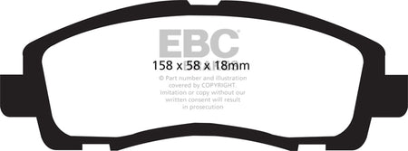 EBC Yellowstuff is an aramid fibre based brake compound with high brake effect form cold and is possibly one of the first ever compounds that can be used for STREET AND TRACK DRIVING. These pads do not require warm up but do get even stronger under the heat of hard driving. These are not a low dust pad and if your desire is for a low dust premium street use pad, you should consider EBC Redstuff.When considering full race use, Yellowstuff has been a strong favourite, having been used for two years in the Swedish Camaro Cup and at numerous other race events where a stock caliper system is fitted.It is also the choice of 90-percent of the Mazda MX5 Miata competitors in the UK race series and has an unblemished record as rotor friendly track pad for vehicles up to 2000 kgs weight or 200 BHP.In the USA the SCCA and NASA drivershave been testing Yellowstuff with feedback and good reports POURING in from a 543 test driver major market proving event with these groups. Read that figure again 543 test drivers.There is no guesswork here.